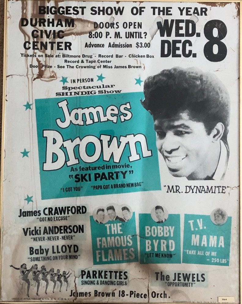Dad didn’t know what to make of Mojo at first, but watching a guy who watched James Brown and the Famous Flames at the Durham Civic Center in 1964 react to Mojo opener, “We Gotta Have More Soul!” is one of the great pleasures of my life. It also made Dad a lifelong Mojo devotee.